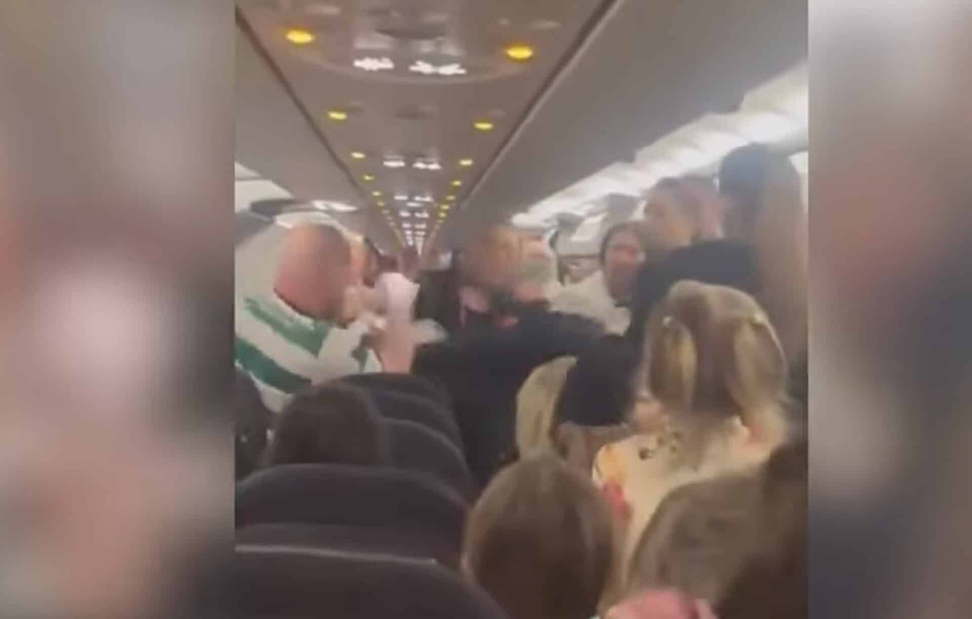 Όπως φαίνεται σε βίντεο που κατέγραψε η New York Post, ο άνδρας με μπλούζα της Σέλτικ έριξε μπουνιές σε αεροσυνοδούς που προσπαθούν να τον στταματήσουν.