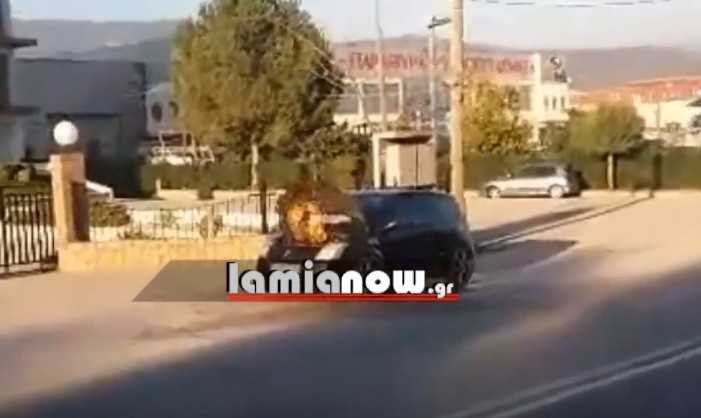 Λαμία: Ι.Χ λαμπάδιασε καθ’ οδόν – Μεγάλη λαχτάρα για τους επιβαίνοντες (vid)