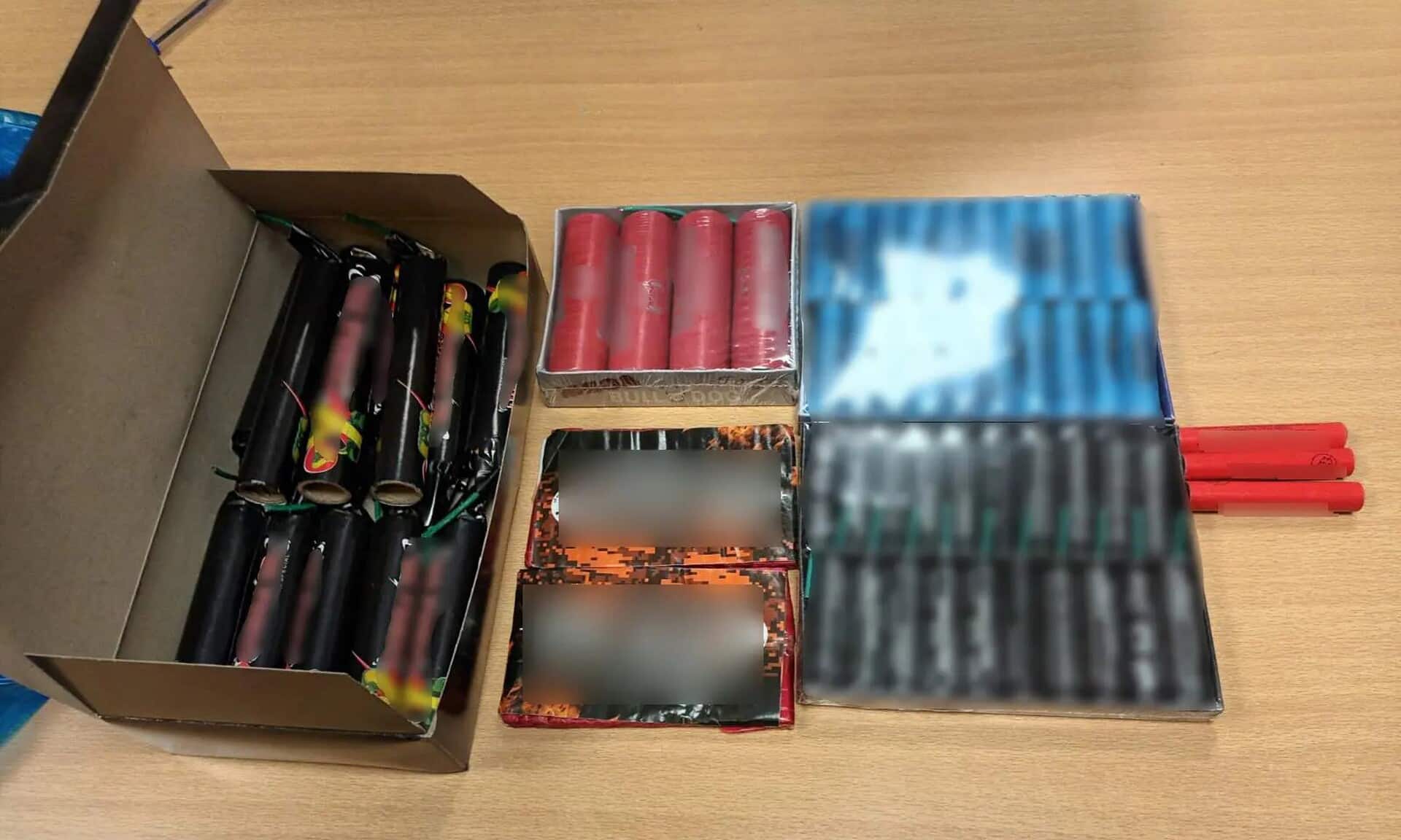 Μετά από έλεγχο στην κατοχή του και στο σπίτι του βρέθηκαν συνολικά και κατασχέθηκαν 404 κροτίδες, 160 βεγγαλικά και κινητό τηλέφωνο