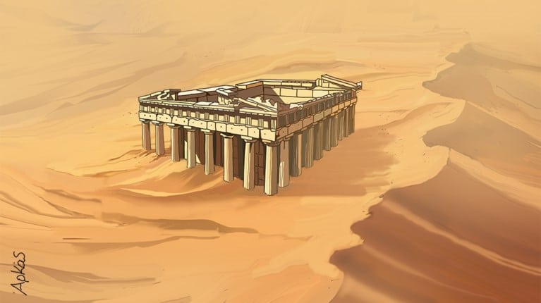 Ο Αρκάς που πάντα με τον δικό του μοναδικό τρόπο σχολιάζει την επικαιρότητα με το σημερινό του σκίτσο παρουσιάζει τον Παρθενώνα που βυθίζεται στην άμμο.