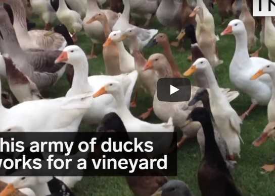 Ένας αμπελώνας στη Νότια Αφρική έχει ένα στρατό με 900 πάπιες που κάνουν μία συγκεκριμένη δουλειά. Απαλλάσσουν τον αμπελώνα από παράσιτα που μπορεί να τον βλάψουν. Δύο φορές την ημέρα, ένα “ποτάμι” από πάπιες, τρέχει για να πιάσει δουλειά και το θέαμα είναι εντυπωσιακό και χαριτωμένο.