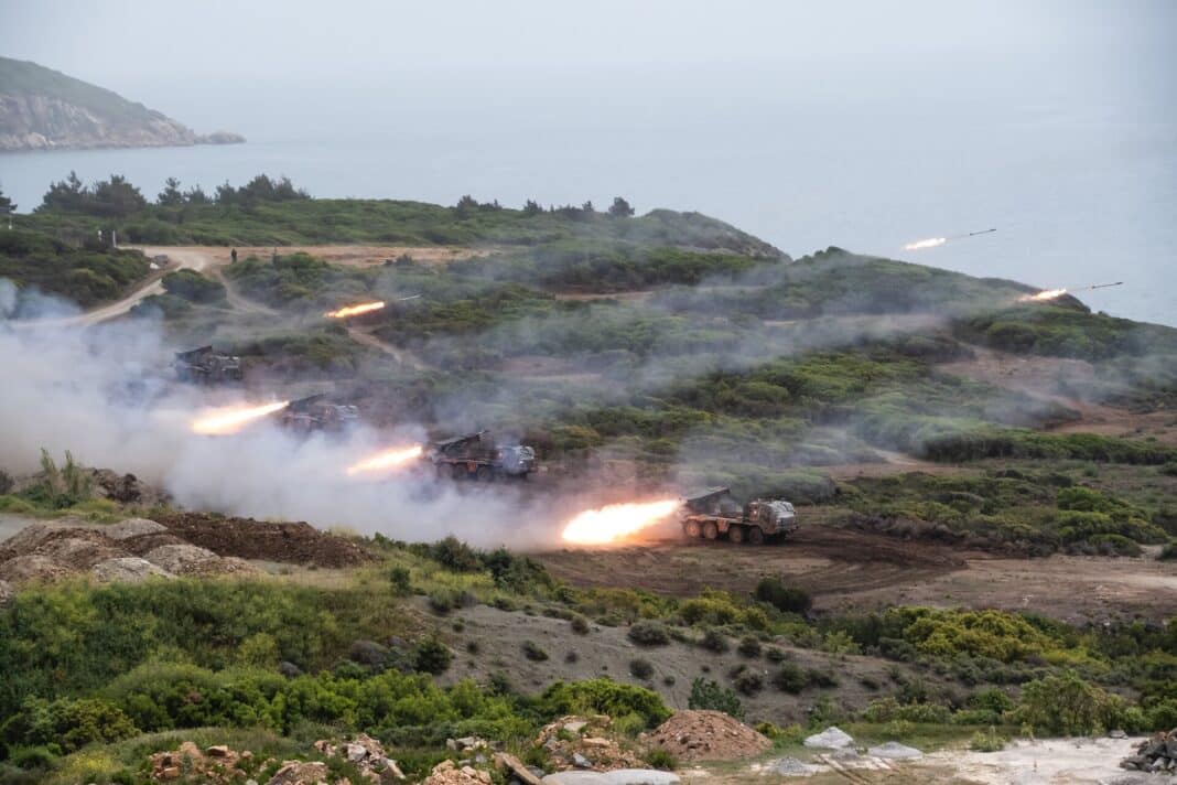 Ροδόπης, βολές Μονάδων Πολλαπλών Εκτοξευτών Πυραύλων (ΠΕΠ) RΜ-70 Α΄