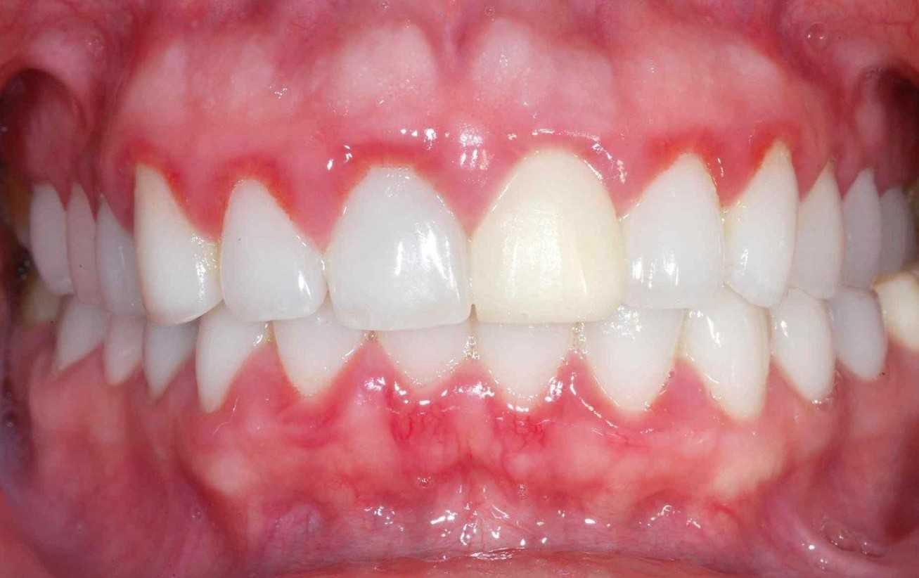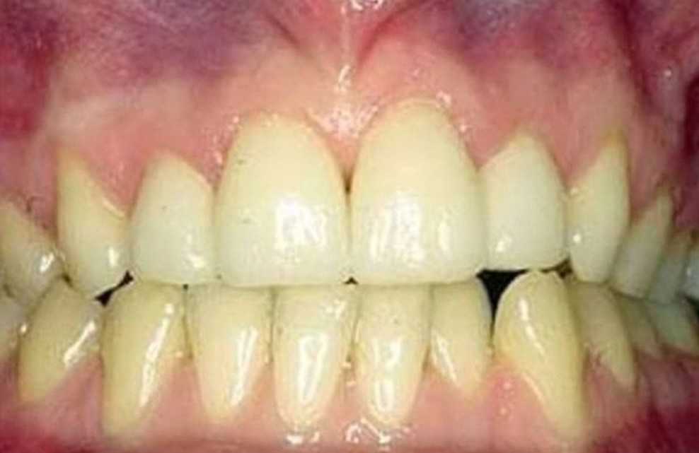 Ετσι στις παρακάτω δύο φωτογραφίες θα δείτε ότι στην πρώτη περίπτωση το άτομο πλένει συχνά τα δόντια του και έχει ροζ ούλα, ενώ στη δεύτερη δεν τα πλένει συχνά και γι΄ αυτό έχει κόκκινα ούλα.