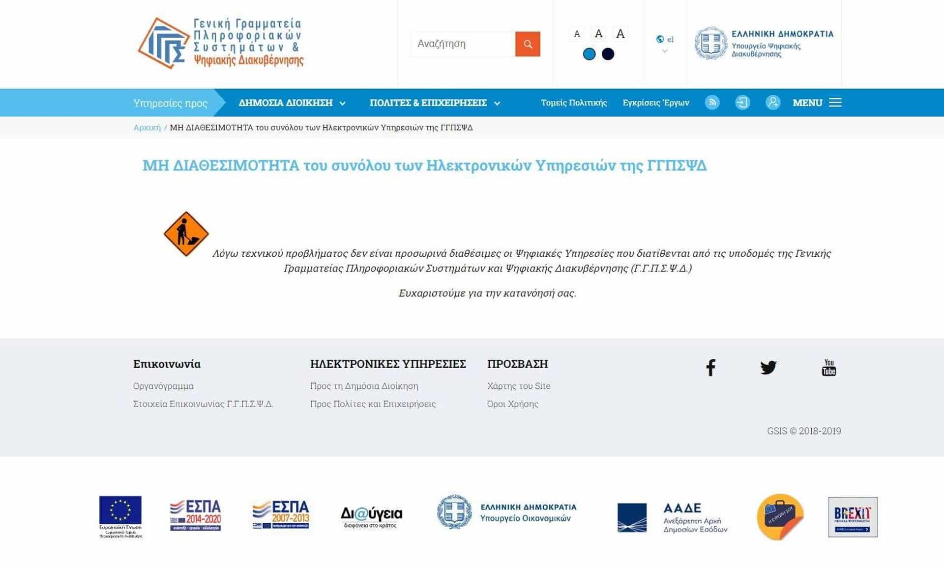 «Μη διαθεσιμότητα ηλεκτρονικών υπηρεσιών της Γενικής Γραμματείας Πληροφοριακών Συστημάτων και Ψηφιακής Διακυβέρνησης