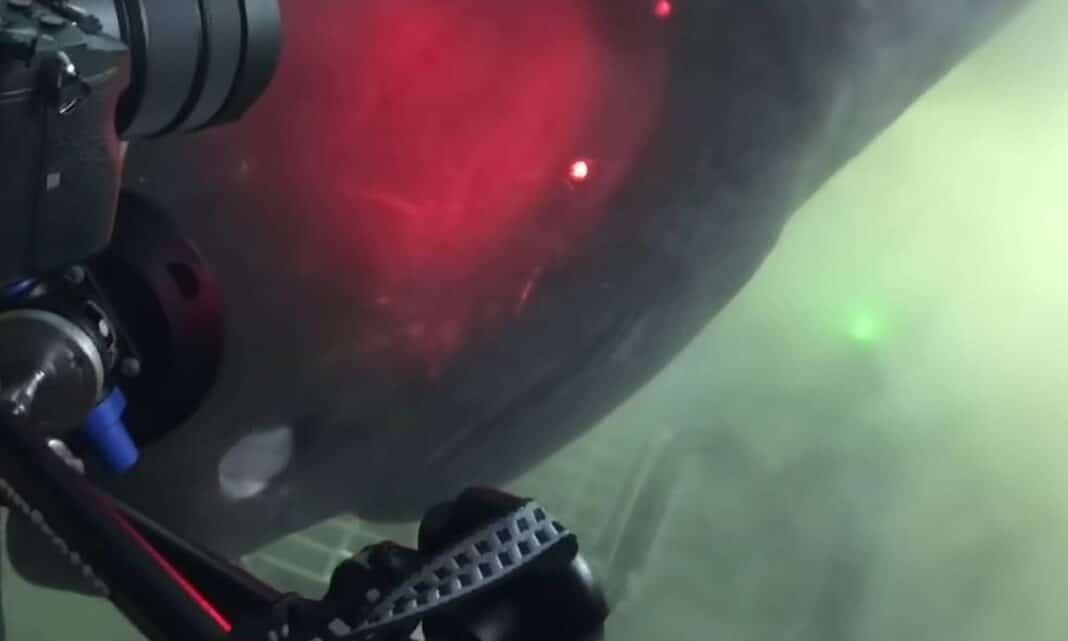Η ομάδα προσδιορίζει τον καρχαρία ως θηλυκό και ένας από τους επιβάτες του εκτιμά ότι είναι “μεγαλύτερος από το υποβρύχιο”, δείχνοντας πόσο επιβλητικό είναι πραγματικά το πλάσμα.