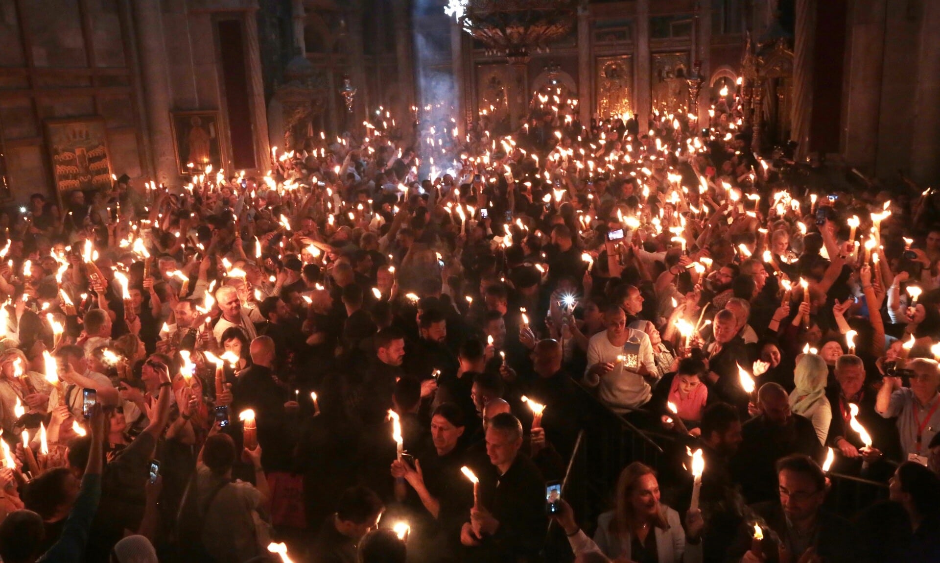 Υπό τη «σκιά» του πολέμου που μαίνεται στη Λωρίδα της Γάζας θα πραγματοποιηθεί φέτος η τελετή της Αφής του Αγίου Φωτός στα Ιεροσόλυμα. Το χαρμόσυνο μήνυμα της Ανάστασης θα σταλεί από τους Αγίους Τόπους σε όλη την Οικουμένη υπό δρακόντεια μέτρα που εδώ και μέρες έχουν ληφθεί για την ασφάλεια των πιστών, ενώ το Άγιο Φως αναμένεται να μεταφερθεί στην Ελλάδα με κυβερνητικό αεροσκάφος.