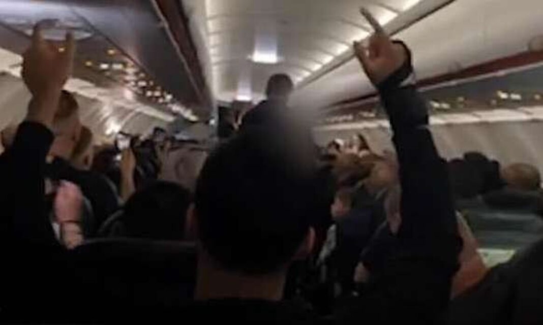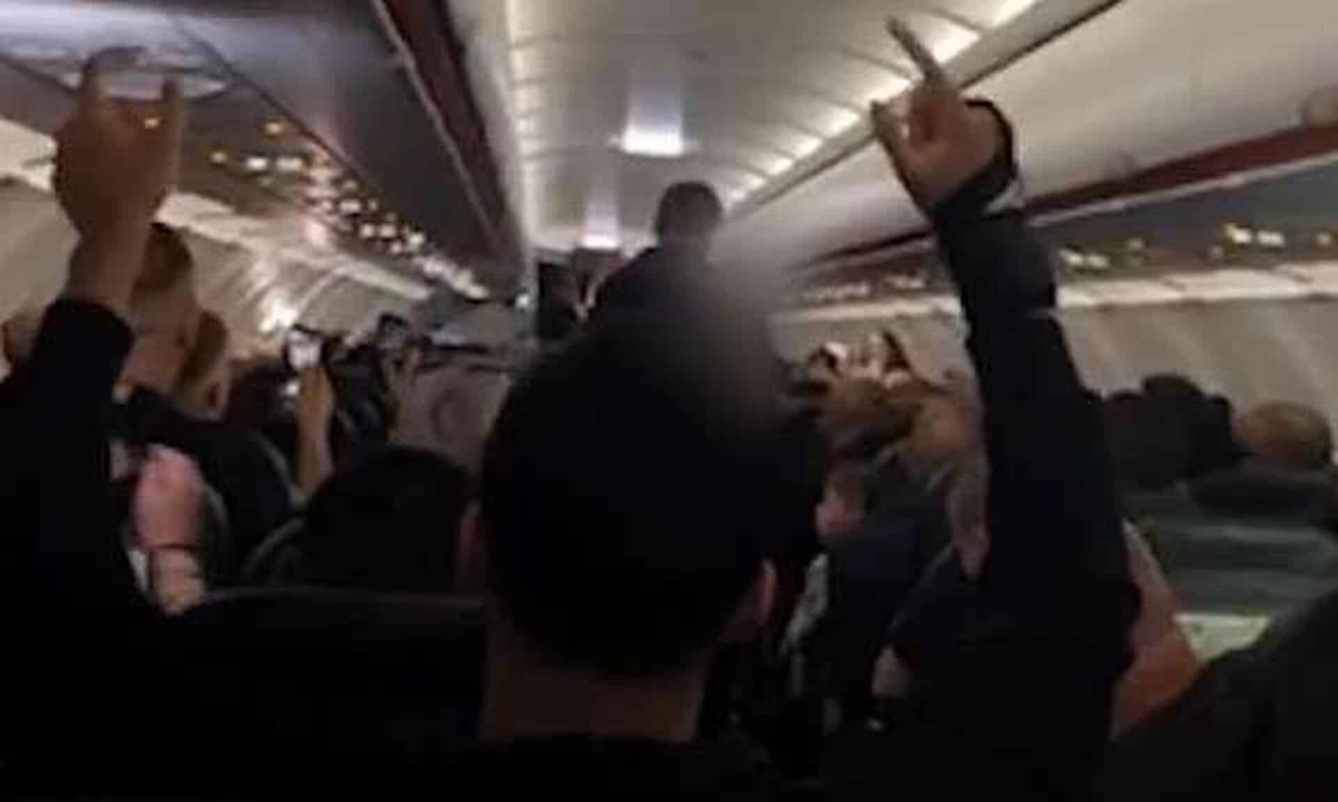 Eκνευρισμένοι επιβάτες ακούστηκαν να ζητωκραυγάζουν όταν ένα ζευγάρι επιβατών εκδιώχθηκαν από μια πτήση της easyJet, η οποία αναγκάστηκε να αλλάξει πορεία και να κάνει μια απρογραμμάτιστη στάση λόγω της θορυβώδους συμπεριφοράς τους χθες το βράδυ.