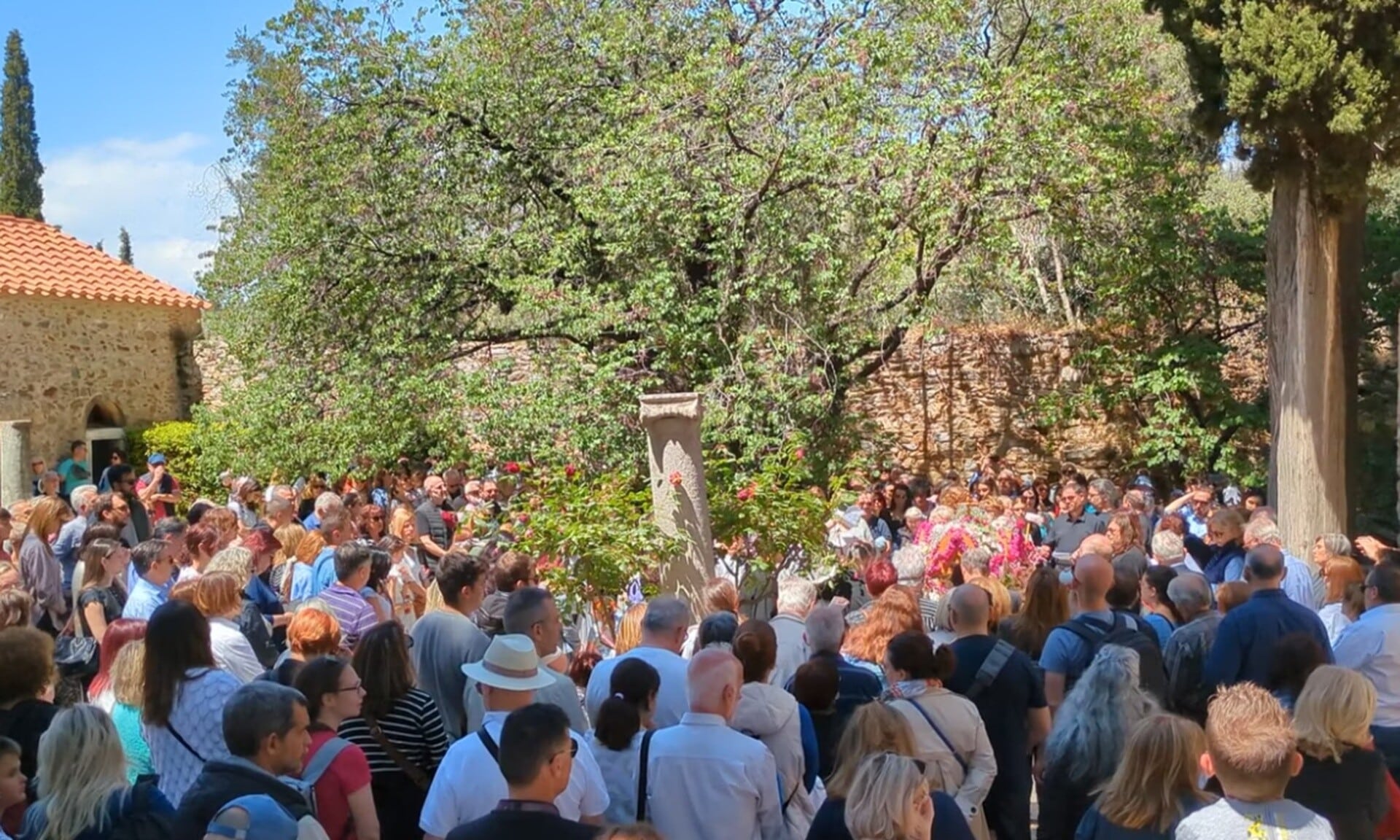 Η κατάνυξη έφτασε στην κορύφωσή της όταν χορωδία και πιστοί έψαλλαν στον κήπο της Μονής το «Ω γλυκύ μου έαρ»