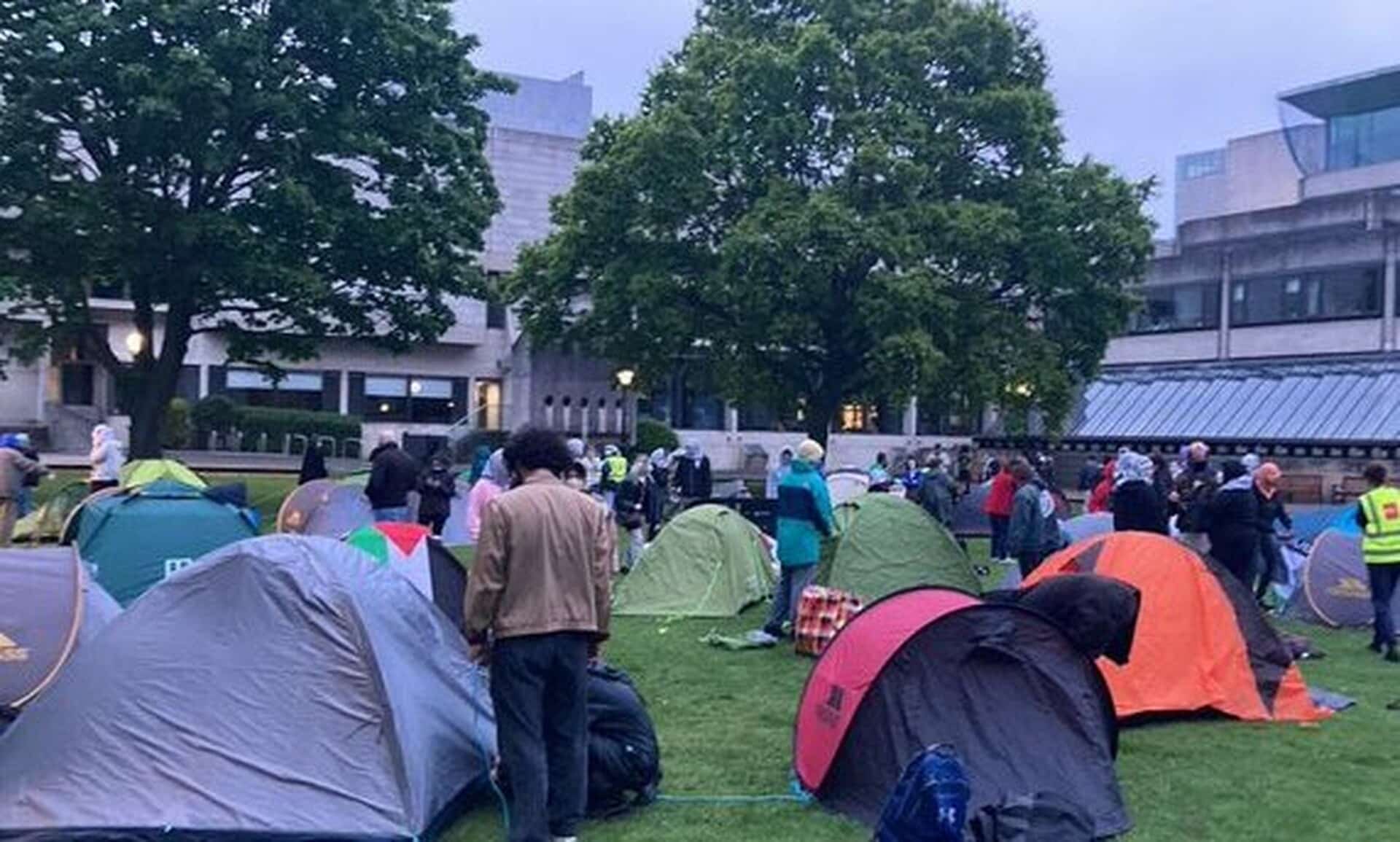 Φοιτητές στο Κολέγιο Τρίνιτι του Δουβλίνου, που διαμαρτύρονται για τον πόλεμο του Ισραήλ στη Γάζα, έστησαν έναν καταυλισμό που ανάγκασε τη διοίκηση του πανεπιστημίου να περιορίσει την πρόσβαση στην πανεπιστημιούπολη και να κλείσει την έκθεση του Βιβλίου του Κελς, ενός από τα κορυφαία τουριστικά αξιοθέατα της Ιρλανδίας.