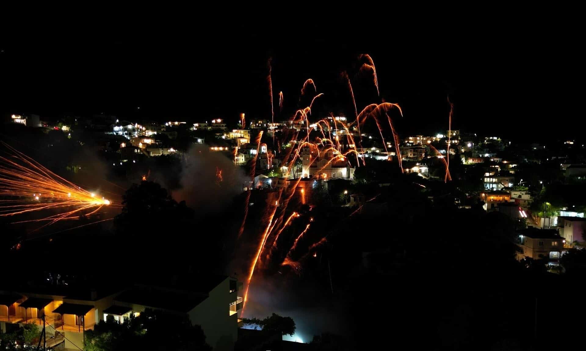 Μόλις οι καμπάνες σήμαναν 23:00, οι πρώτες μαζικές ρίψεις έκαναν τη νύχτα… μέρα, ενώ, μία ώρα αργότερα οι ρουκέτες μαζί με εκατοντάδες πυροτεχνήματα μετέφεραν το χαρμόσυνο μήνυμα της Ανάστασης του Κυρίου.