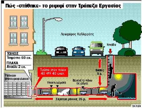 Το σχέδιο των ληστών ήταν εξαιρετικά οργανωμένο: ενώ τρυπούσαν τον τοίχο της Τράπεζας, ο συναγερμός χτυπούσε, ωστόσο, εφόσον ήταν Σαββατοκύριακο και το υποκατάστημα ήταν κλειστό και χωρίς εξωτερικά ίχνη παραβίασης, το γεγονός θεωρήθηκε τυχαίο.