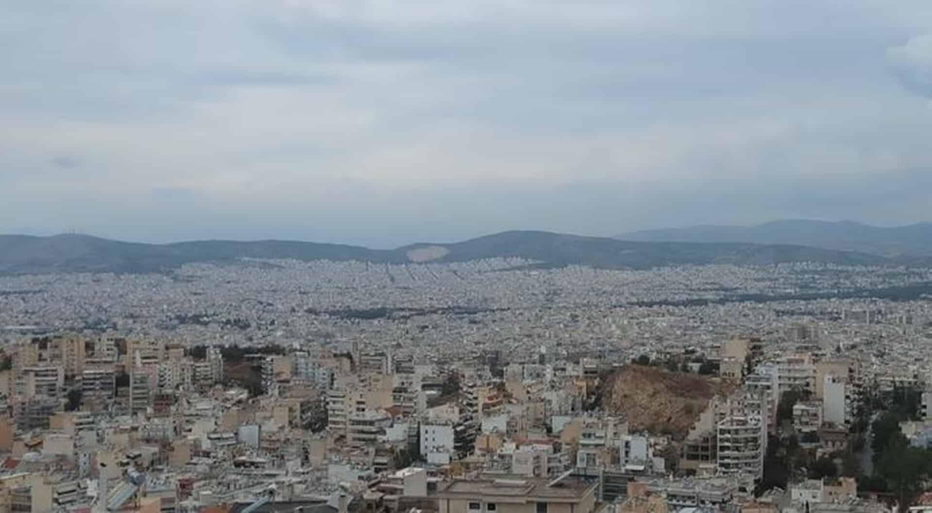 Χαρακτηριστική είναι η εικόνα από τον Λυκαβηττό και τα Τουρκοβούνια με την όψη της Αθήνας να είναι «σκοτεινή», τόσο λόγω της επανεμφάνισης της αφρικανικής σκόνης όσο και των νεφώσεων που έχουν σχηματιστεί στον Αττικό ουρανό.