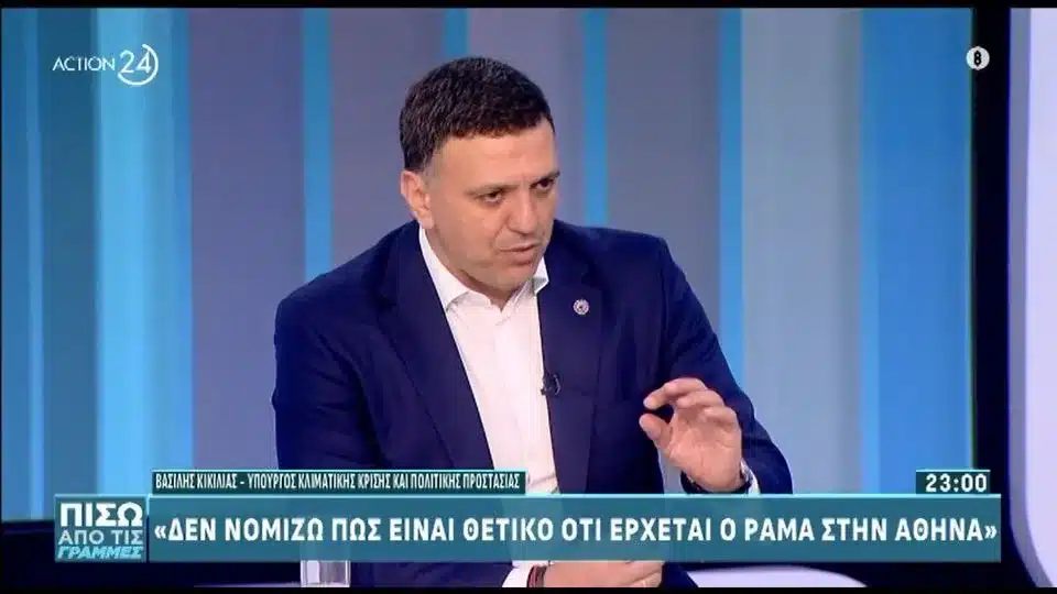 Ο υπουργός Κλιματικής Κρίσης και Πολιτικής Προστασίας, Βασίλης Κικίλιας μίλησε για την κλιματική κρίση αλλά και για την επίσκεψη Ράμα στον τηλεοπτικό σταθμό Action 24.