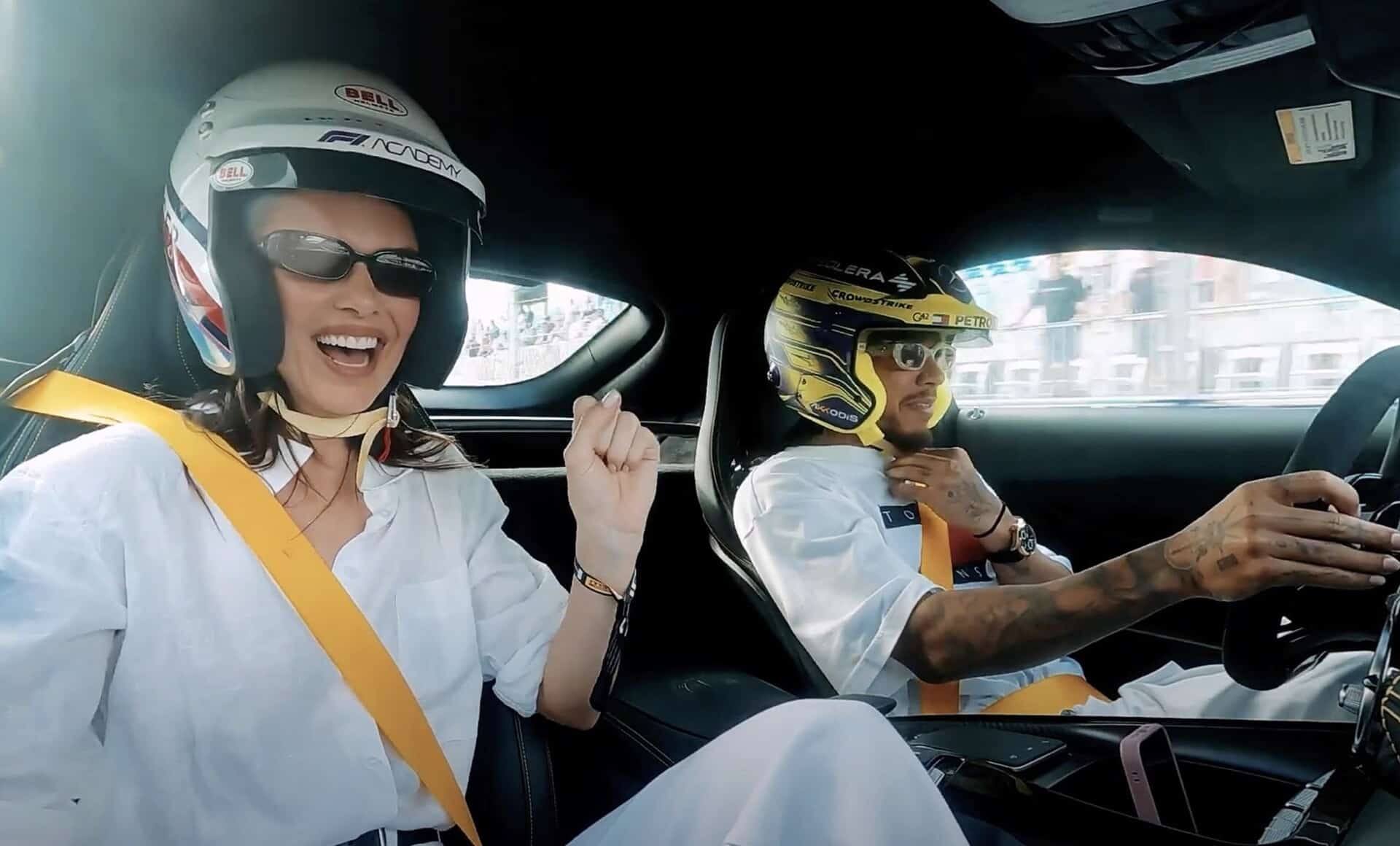 Ενώ το αρχικό πλάνο προέβλεπε έναν γρήγορο γύρο, ο Hamilton δεν άντεξε και μπήκε στο πειρασμό να ξεπεράσει τα όρια προκαλώντας τον τρόμο και τις κραυγές του πρώην μοντέλου της Victoria’s Secret.