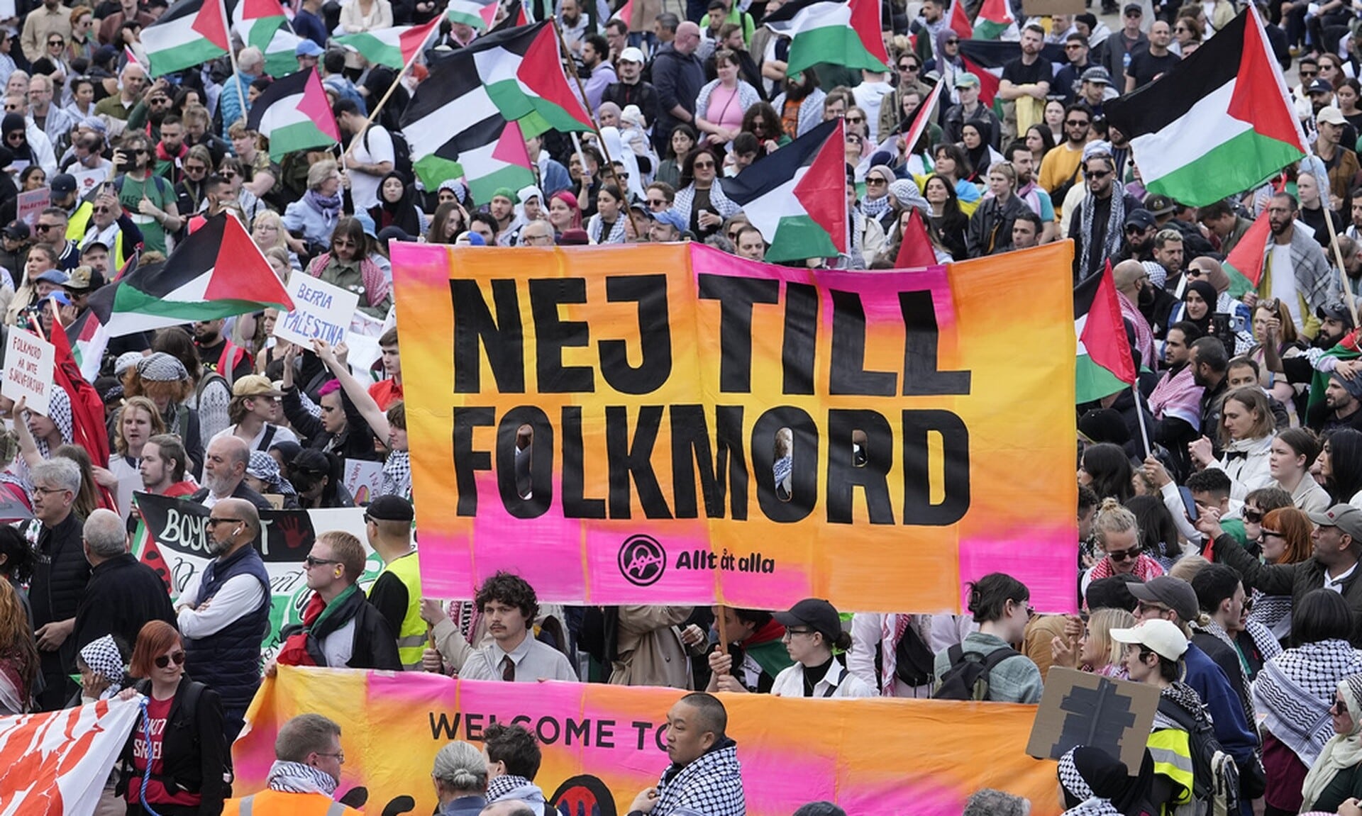 Το απόγευμα, περίπου 5.000 άνθρωποι έκαναν ειρηνική πορεία στην πόλη, όπου ζει η πλειονότητα του πληθυσμού της Σουηδίας, παλαιστινιακής καταγωγής, για να διαμαρτυρηθούν για τη συμμετοχή του Ισραήλ στον μουσικό διαγωνισμό.