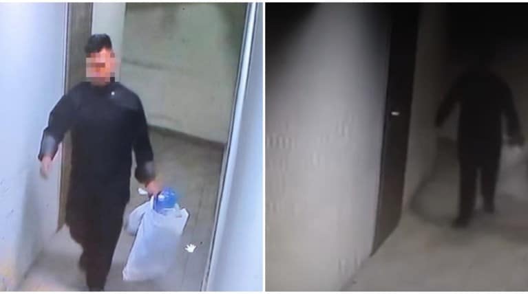 Στο βίντεο το οποίο τραβήχτηκε από κάμερα ασφαλείας του ξενοδοχείου, φαίνεται ο άνδρας με ταχύ βήμα, να κατευθύνεται προς τον κάδο απορριμμάτων και να βάζει τη σακούλα με το βρέφος στα σκουπίδια.