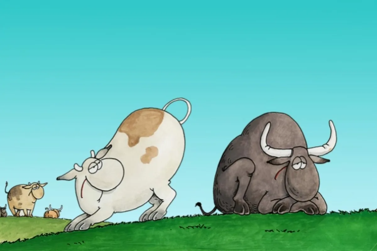 Η αγελάδα κουνά ένα φόρεμα με την ουρά της και αναρωτιέται μιλώντας στον τράγο γιατί δεν της ζητά ποτέ να κάνουν έρωτα. Εκείνος με τη σειρά του απαντά γιατί φοβάται μήπως το δεχθεί.