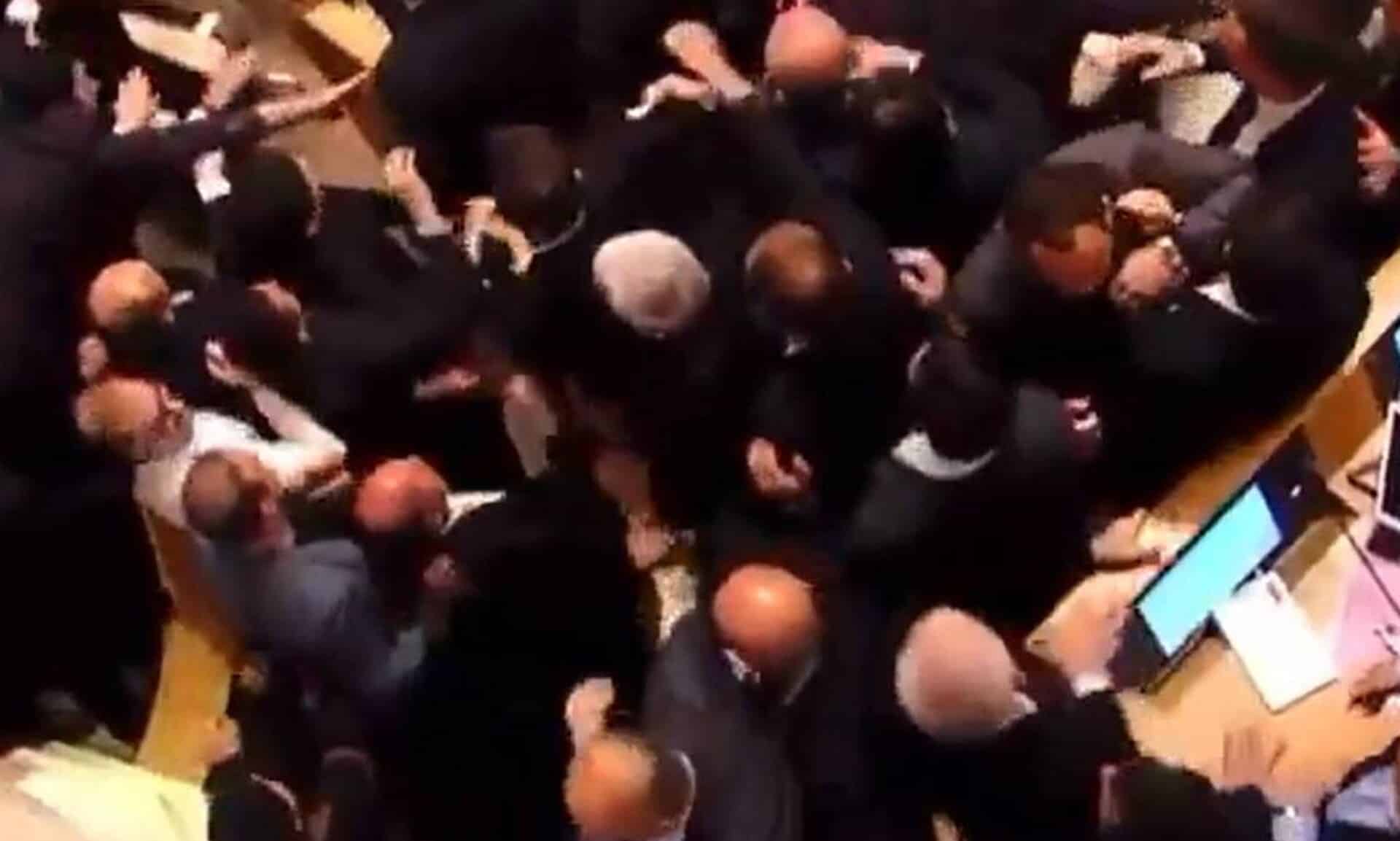 Μέσα στο κοινοβούλιο όμως η εικόνα ήταν ακόμη χειρότερη αφού κυβερνητικοί βουλευτές πιάστηκαν στα χέρια με συναδέλφους τους της αντιπολίτευσης.
