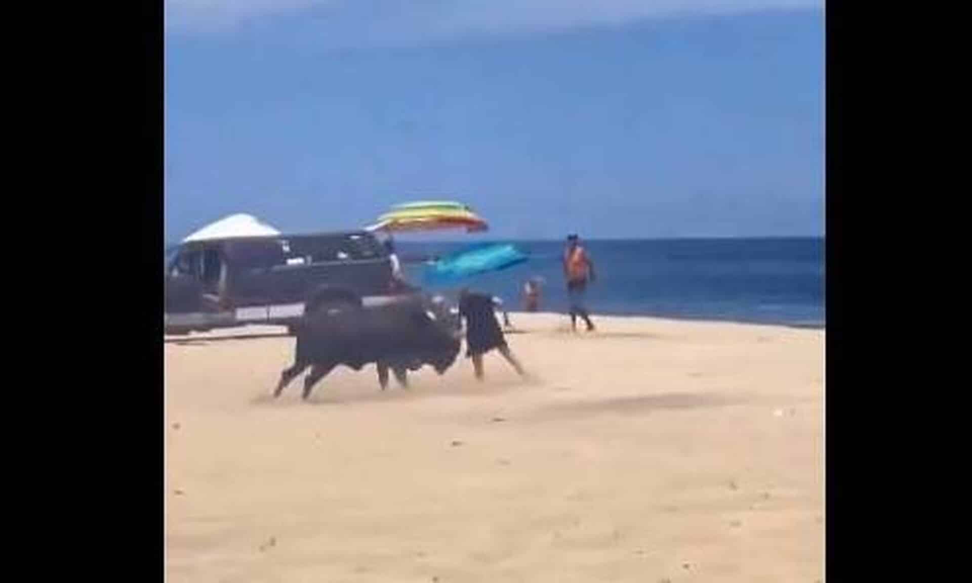 Απορίας άξιο είναι πώς βρέθηκε ο ταύρος στην παραλία, ενώ δεν είναι γνωστή η κατάσταση της υγείας της γυναίκας που δέχθηκε την επίθεση από το ζώο.