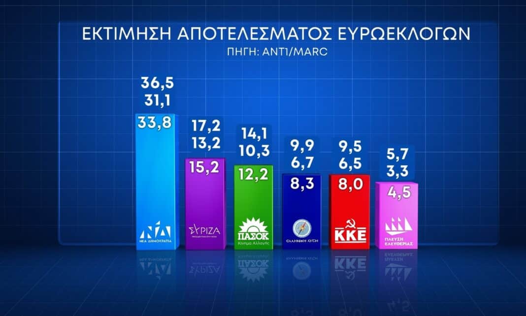 Ειδικότερα, η Νέα Δημοκρατία συγκεντρώνει στην πρόθεση ψήφου 30,7%, ακολουθεί ο ΣΥΡΙΖΑ με 13%, το ΠΑΣΟΚ με 10,4%, η Ελληνική Λύση με 7,2%, το ΚΚΕ με 7%, η Πλεύση Ελευθερίας με 3,7%, η Νέα Αριστερά με 2,6%, το Μέρα25 με 2,6%, Νίκη 2,5%, Φωνή Λογικής 2,4%, Δημοκράτες 2%.