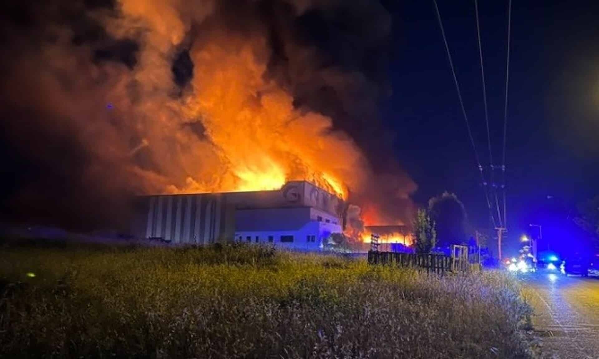 Καταστράφηκε ολοσχερώς το εργοστάσιο στην βιομηχανική περιοχή της Λαμίας από πυρκαγιά που ξέσπασε το βράδυ της Κυριακής στις 21:30 χωρίς μέχρι στιγμής να έχει διευκρινιστεί η αιτία.