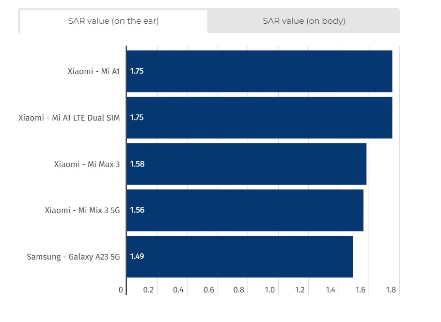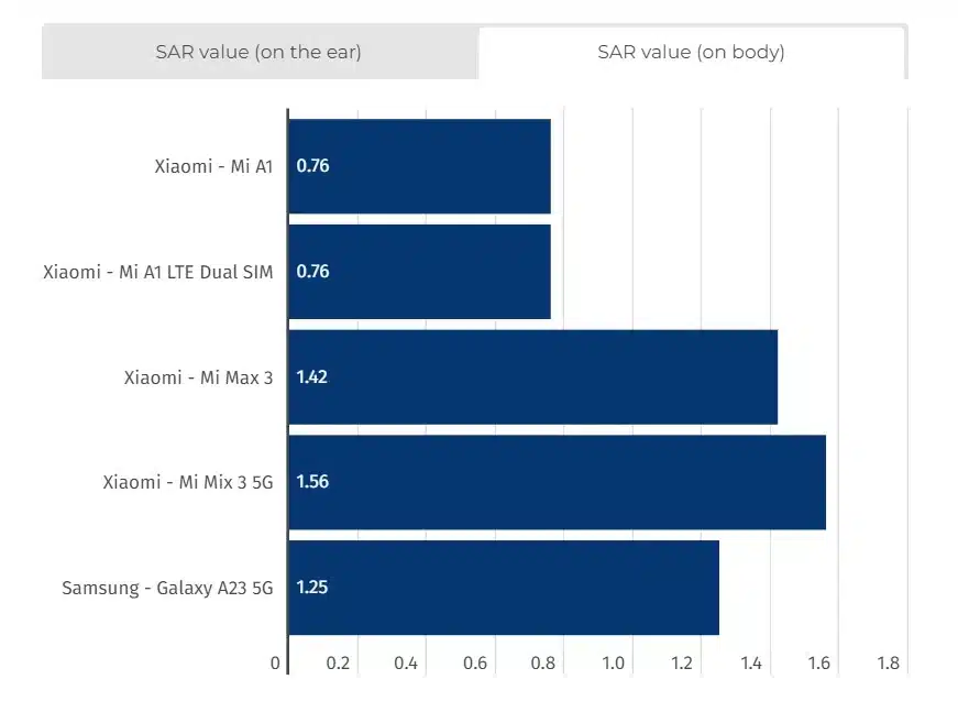 Η εξέλιξη της τεχνολογίας έχει σταδιακά επαυξήσει την ακτινοβολία των smartphone συσκευών. Ειδικά μερικά Xiaomi smartphones παρουσιάζουν μεγάλα ποσά ακτινοβολίας. Πιο συγκεκριμένα, το Xiaomi Mi A1 παρουσιάζει Specific Absorption Rate ή αλλιώς SAR στο αυτί που φθάνει το 1.75 W/kg ενώ στο σώμα το 0.76W/kg.