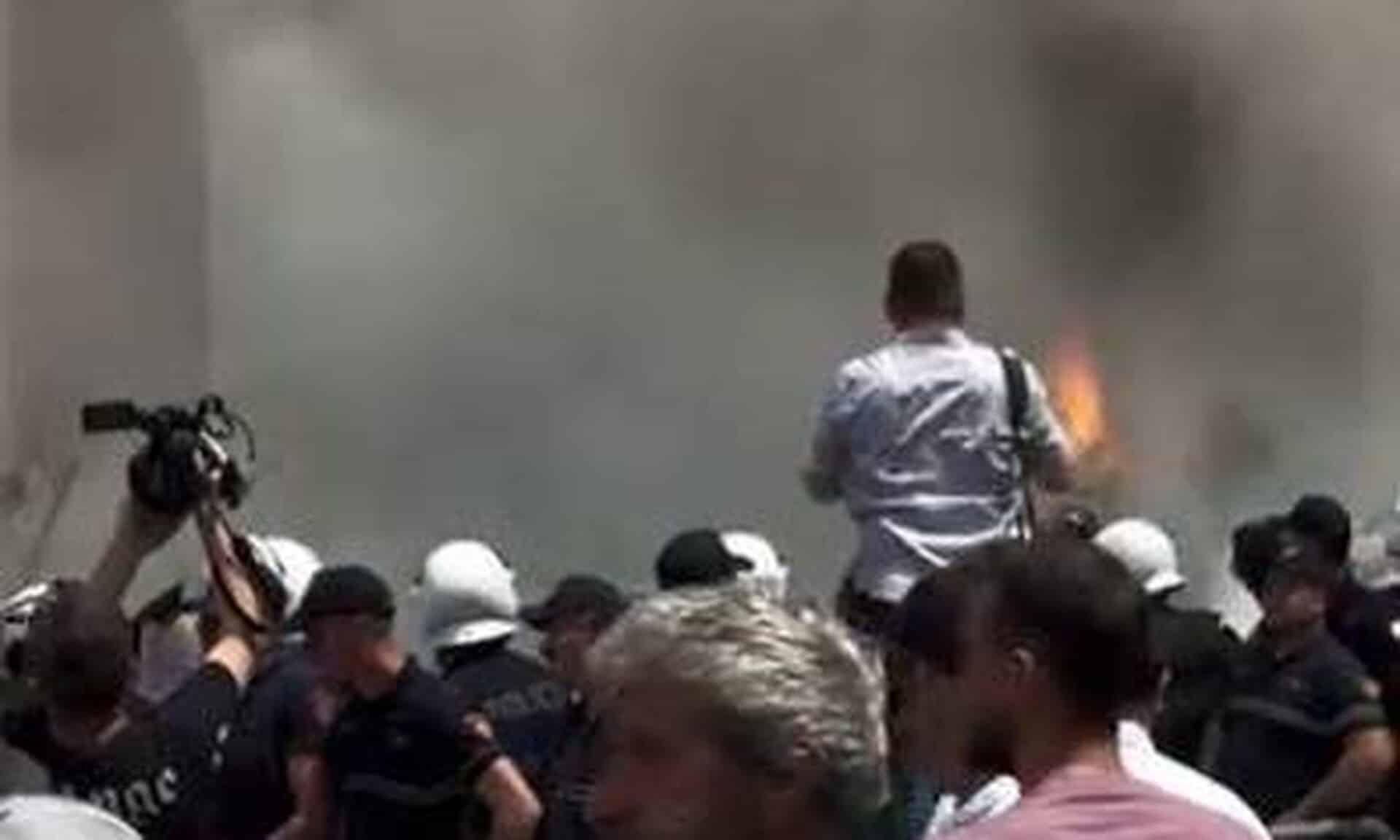 Σοβαρά επεισόδια σημειώθηκαν σήμερα (21/05) έξω από το δημαρχείο Τιράνων, όταν διαδηλωτές που συγκεντρώθηκαν εκεί, ζητώντας την παραίτηση του Δημάρχου, Εριόν Βελιάι, εκλεκτό του Έντι Ράμα, πέταξαν μολότοφ και προσπάθησαν να εισβάλλουν στο κτήριο.