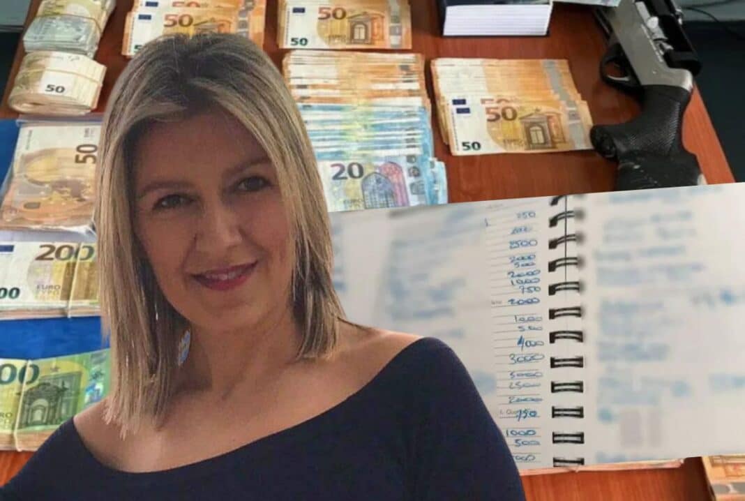 Φωτογραφίες ντοκουμέντο που υπάρχουν στη δικογραφία φαίνεται η διεκπεραιώτρια να βγαίνει από την Εφορία κρατώντας ένα φάκελο στα χέρια.