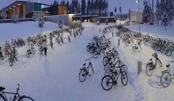 Μια σειρά από ποδήλατα έξω από ένα σχολείο στη χιονισμένη πόλη Ούλου στη Φινλανδία είναι μια συνηθισμένη εικόνα για τους ντόπιους, αλλά ένα ασυνήθιστο θέαμα για τον υπόλοιπο κόσμο.