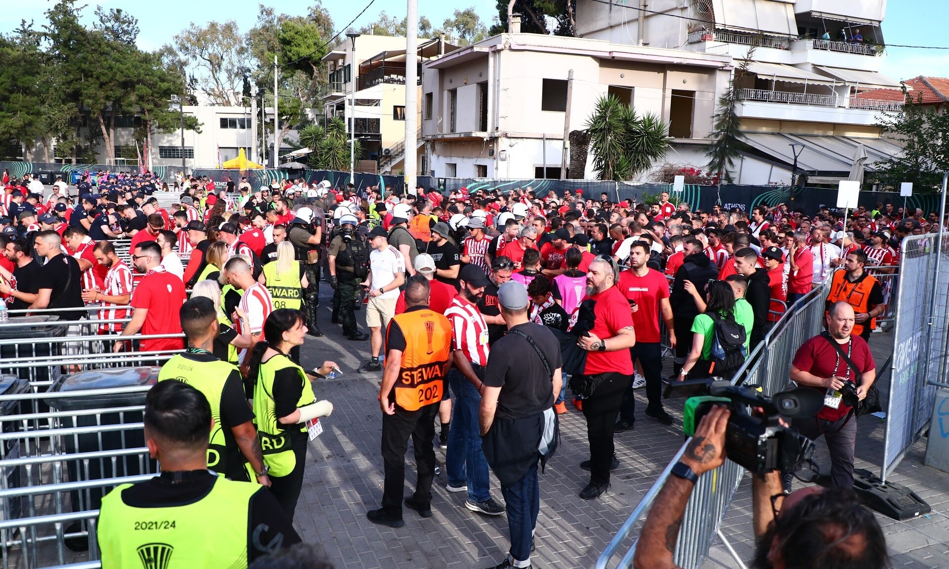 Σε εξέλιξη βρίσκεται η προσέλευση των φίλων Ολυμπιακού και Φιορεντίνα στο γήπεδο για την διεξαγωγή του τελικού του Conference League.