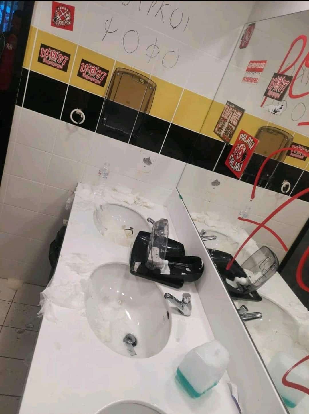 Βανδαλισμοί στο Opap Arena – Καταστροφές στις τουαλέτες από θερμόαιμους οπαδούς του Ολυμπιακού στο γήπεδο της ΑΕΚ