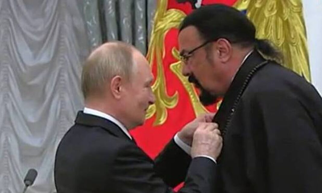 Ο Ρώσος πρόεδρος Βλαντιμίρ Πούτιν επέδωσε το παράσημο για Τάγμα της Φιλίας στον Ειδικό Αντιπρόσωπο του Ρωσικού Υπουργείου Εξωτερικών για τις Ανθρωπιστικές Σχέσεις, Αμερικανό ηθοποιό Στίβεν Σίγκαλ.