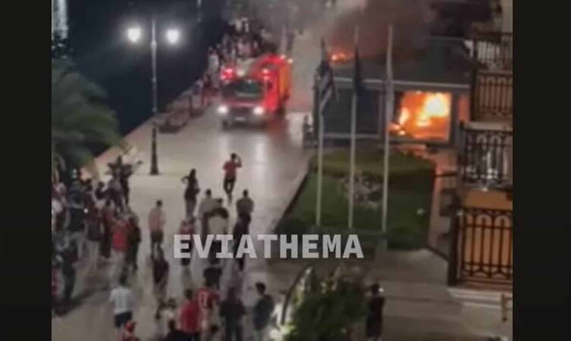 Έξαλλοι πανηγυρισμοί στη Χαλκίδα για την νίκη του Ολυμπιακού – Κάηκε μαγαζί από φωτοβολίδα