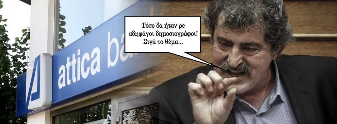 Σοβαρά ερωτήματα και αίσθηση προκαλεί η αποκάλυψη ότι ο Παύλος Πολάκης πήρε καταναλωτικό δάνειο 100.000 ευρώ, από τη χρεοκοπημένη Attica Bank