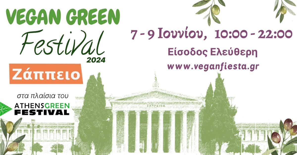 Το Vegan Green Festival σας υποδέχεται στο Ζάππειο, 7 με 9 Ιουνίου, ώρες 10:00 – 22:00, με ελεύθερη είσοδο!