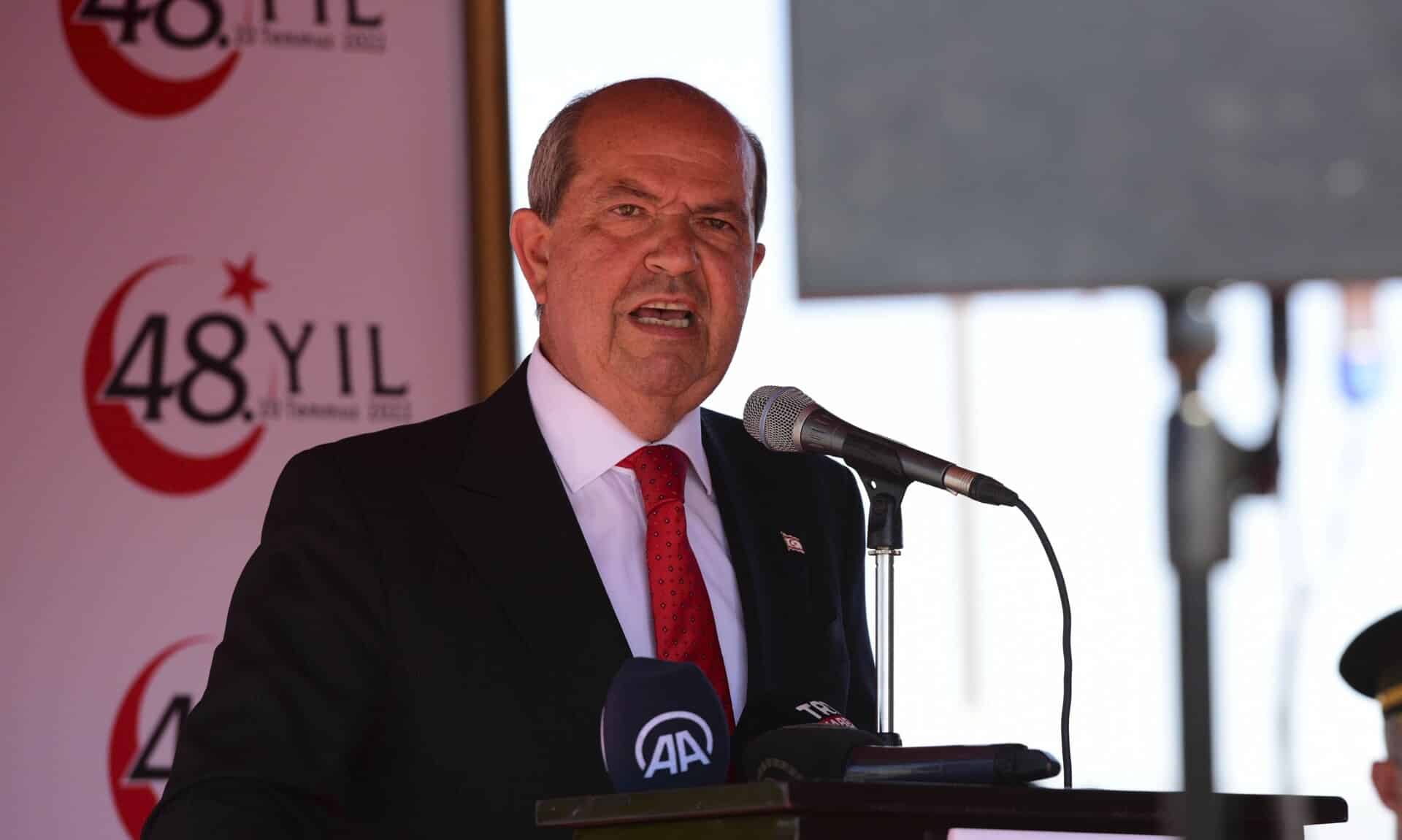 Αυτές είναι εξαιρετικά σημαντικές αξίες. Αυτά όλα τα έχουμε πετύχει μαζί. Τούρκοι στρατιώτες, πριν από 50 χρόνια, ανεβήκατε στον Πενταδάκτυλο ή πηδήξατε με αλεξίπτωτα. Συναντηθήκατε με τους μουτζαχεντίν μας, θα ήθελα να υπενθυμίσω πόσο σημαντικό ήταν για εσάς να κερδίσετε εκείνη τη μάχη υπό πραγματικά δύσκολες συνθήκες. Χωρίς αυτή την επιχείρηση, η Κύπρος θα είχε γίνει σήμερα ελληνικό νησί. Κατά κάποιον τρόπο, η Ελλάδα θα είχε περικυκλώσει τη Δημοκρατία της Τουρκίας. Η “ΤΔΒΚ” έχει κάνει μεγάλα βήματα προόδου τα τελευταία χρόνια για την επιβίωση του ίδιου του “τουρκοκυπριακού λαού”, το μέλλον και την ανεξαρτησία του ‘τουρκοκυπριακού λαού’. Ανάλογα με τις γεωπολιτικές εξελίξεις, είναι μια πατρίδα όπου μπορεί να εφαρμόζεται η εθνική πολιτική», ανέφερε ο Ερσίν Τατάρ.