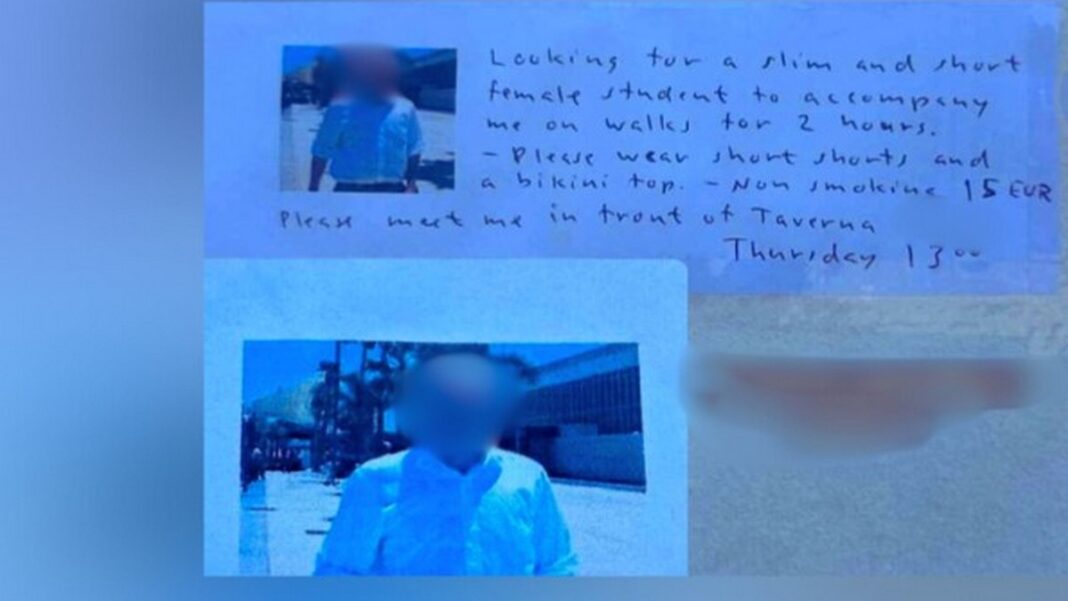 «Αναζητώ αδύνατη, κοντή μαθήτρια, για να μου κάνει παρέα σε περίπατο για δύο ώρες. Να φορά μπικίνι και σορτσάκι, Μη καπνίστρια. 15 ευρώ. Συνάντηση με μπροστά από την ταβέρνα….