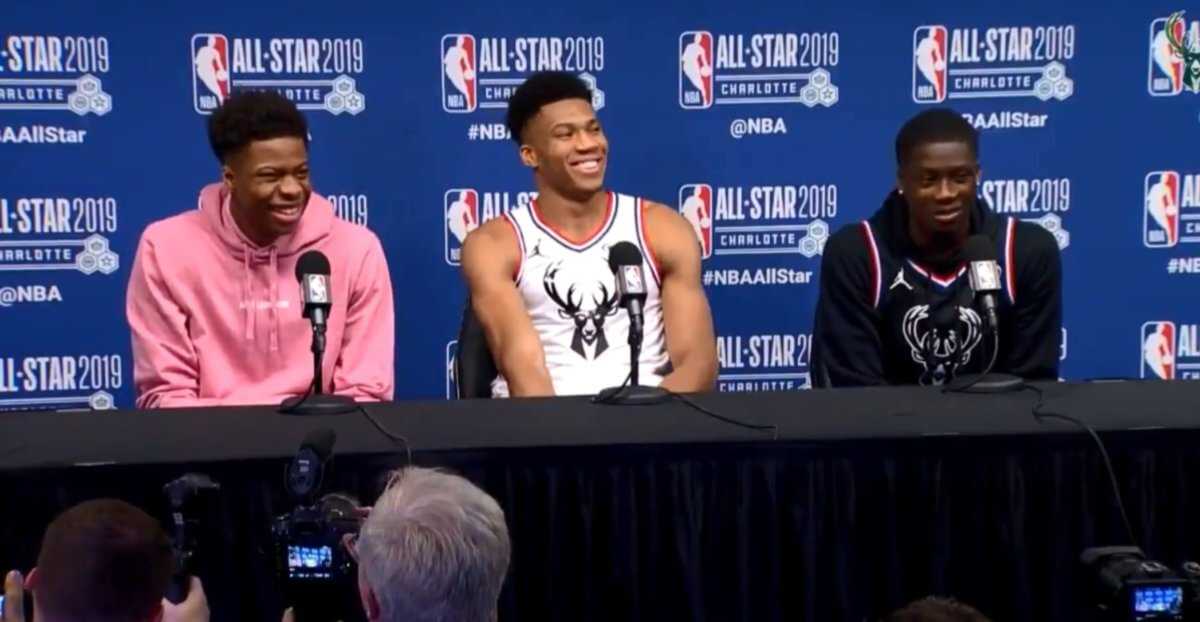 Μετά το τέλος του NBA All Star Game, ο Γιάννης Αντετοκούνμπο εμφανίστηκε στη συνέντευξη Τύπου, έχοντας τον Κώστα και τον Αλέξανδρο στο πλευρό του.