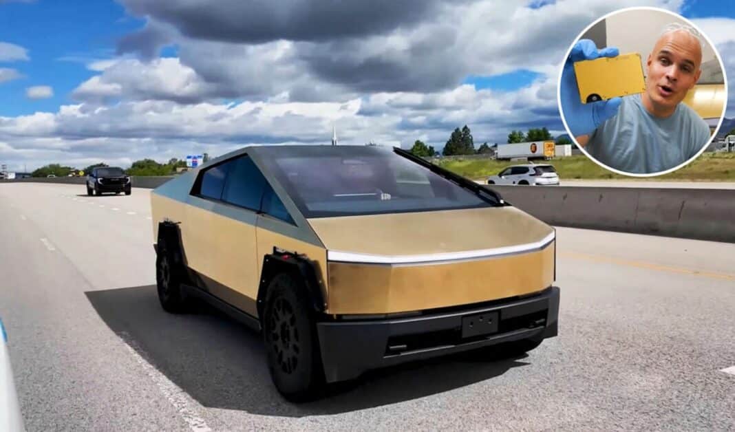 Μάλιστα, το τεράστιο αμάξωμα από ανοξείδωτο ατσάλι έχει γίνει από πολλούς… καμβάς. Για παράδειγμα ο δημοφιλής YouTuber Zack Nelson, γνωστός και ως JerryRigEverything, έχει δημιουργήσει το πρώτο Tesla Cybertruck στον κόσμο επενδυμένο με χρυσό 24 καρατίων!