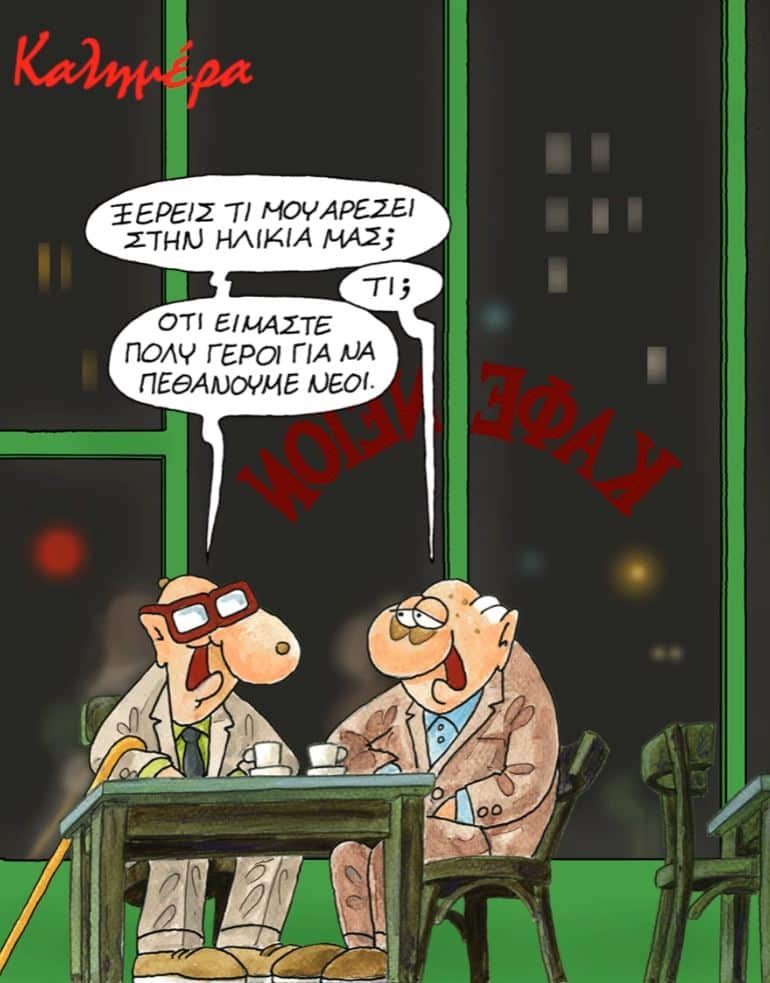 Στη σημερινή «Καλημέρα» του, ο Αρκάς μας καλεί να σκεφτούμε τα καλά που μπορεί να προσφέρει η τρίτη ηλικία, μέσα από τη γνωστή του κωμική και συχνά ειρωνική προσέγγιση. Οι γέροντές του, με τις αστείες τους ατάκες και τις μοναδικές τους προσωπικότητες, μας υπενθυμίζουν ότι η ζωή δεν σταματάει στα γεράματα και ότι πάντα υπάρχει χώρος για γέλιο και αισιοδοξία.
