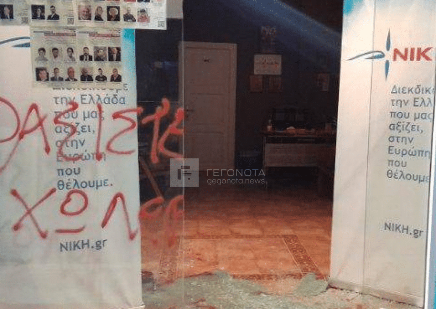Η επίθεση στο πολιτικό γραφείο, σύμφωνα με την ιστοσελίδα gegonotanews.gr, έγινε από τέσσερα άτομα που φορούσαν φούτερ με κουκούλα. Έσπασαν το τζάμι και έγραψαν συνθήματα, όπως χολέρες, φασίστες, θα σας τσακίσουμε. Η αστυνομία συνέλαβε τον 35χρονο που προσπάθησε να ξεφύγει με ποδήλατο.