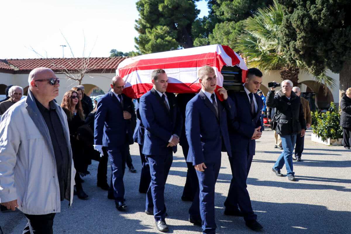 Το “παρόν” στην κηδεία έδωσαν πολλοί παλαίμαχοι συμπαίκτες του στον Ολυμπιακό, ενώ στεφάνια κατέθεσαν η “ερυθρόλευκη” ΠΑΕ και ο μεγαλομέτοχός της, Βαγγέλης Μαρινάκης.