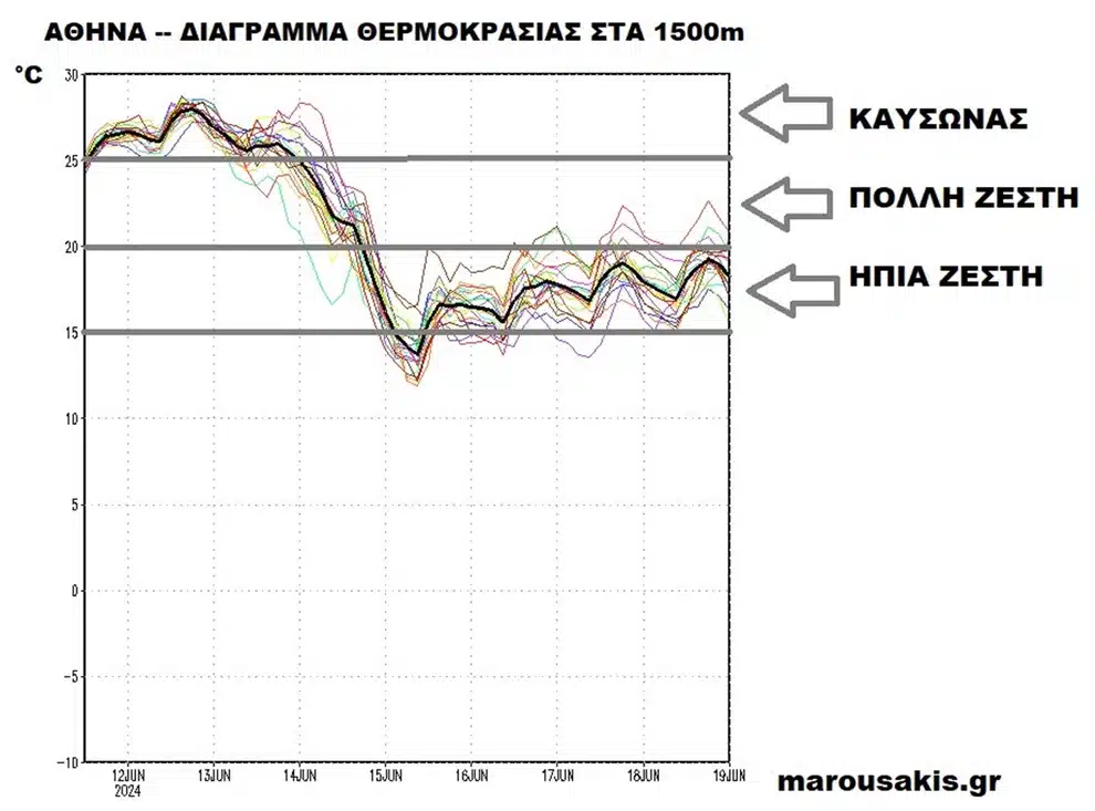 Θερμοκρασία: Από 27 έως 41 με 42 και τοπικά 43 βαθμούς Κελσίου.