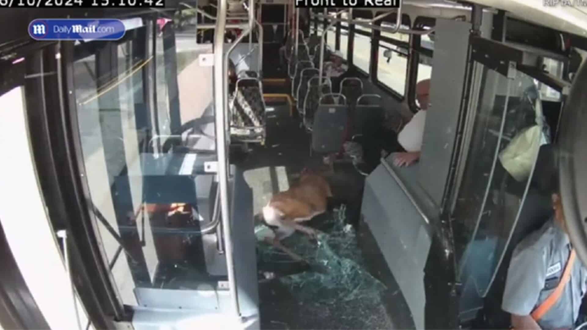 Ένα ελάφι έκανε μια εκρηκτική είσοδο μέσα σε ένα εν κινήσει λεωφορείο στο Ρόουντ Άιλαντ, σύμφωνα με την dailymail.co.uk .