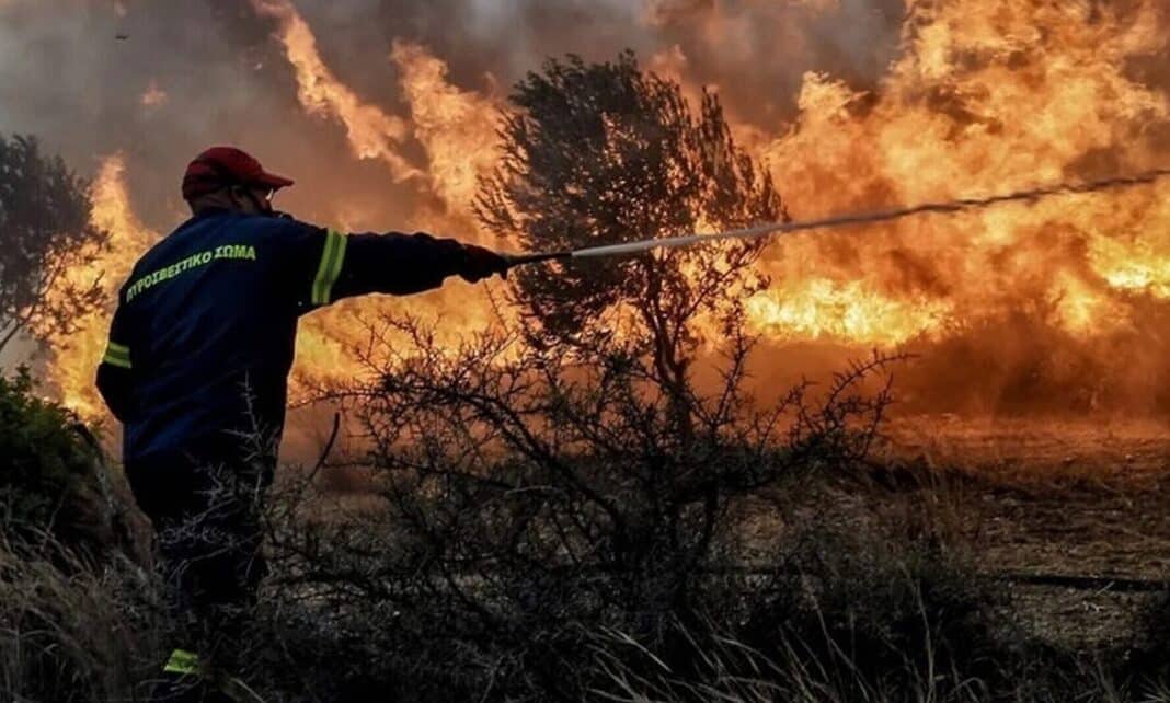 Στο σημείο επιχειρούν 30 πυροσβέστες, με 12 οχήματα, ενώ από αέρος συνδράμει ένα ελικόπτερο.