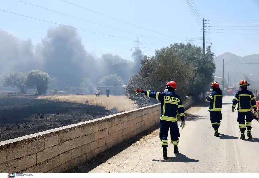 Η φωτιά ξέσπασε από τον παράδρομο της Λεωφόρου Βάρης – Κορωπίου από οικόπεδο πίσω από μια επιχείρηση σκαφών με αποτέλεσμα να μεταδοθεί σύντομα λόγω των ανέμων σε παρακείμενες επιχειρήσεις και σε έκταση με χαμηλή βλάστηση, σύμφωνα με την ΕΡΤ.