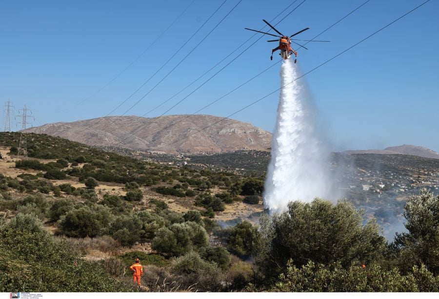 Συνεχείς ρίψεις από τα εναέρια μέσα στο Κίτσι – Καταγγελίες ότι η πυρκαγιά στη Βάρης – Κορωπίου ξεκίνησε από εργασίες
