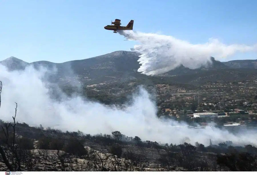 Συνεχείς ρίψεις από τα εναέρια μέσα στο Κίτσι – Καταγγελίες ότι η πυρκαγιά στη Βάρης – Κορωπίου ξεκίνησε από εργασίες