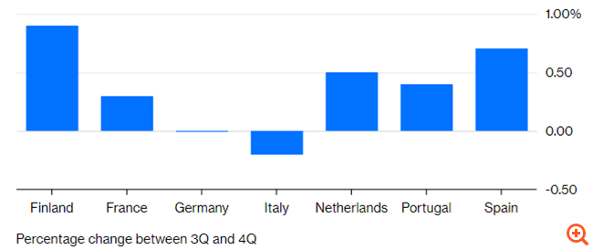 Ο ρυθμός μεγέθυνσης του δ’ τριμήνου σε κάποιες από τις μεγαλύτερες οικονομίες της Ευρωζώνης