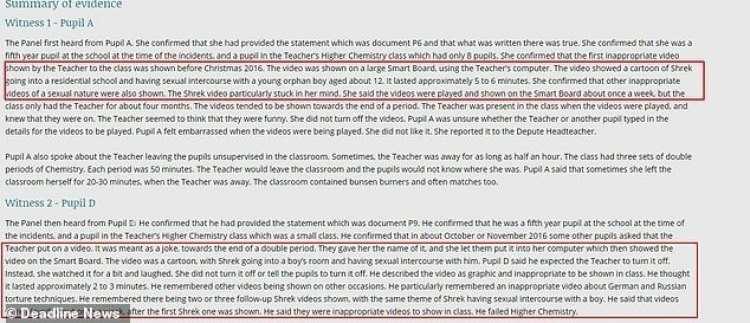 Άλλος μαθητής δήλωσε ότι μετά τον Σρεκ είδαν κι άλλα βίντεο με σεξουαλικό περιεχόμενο.